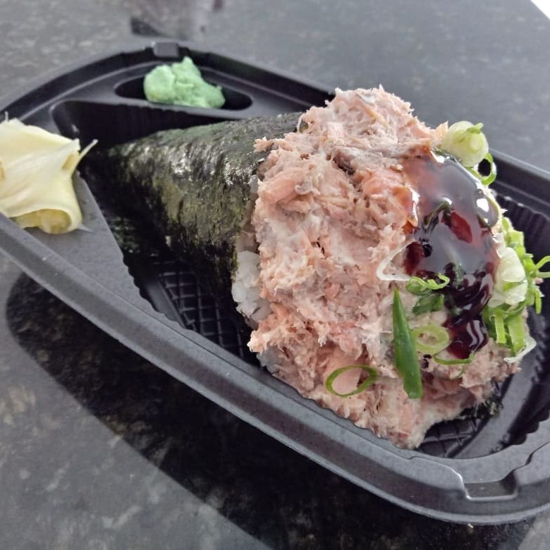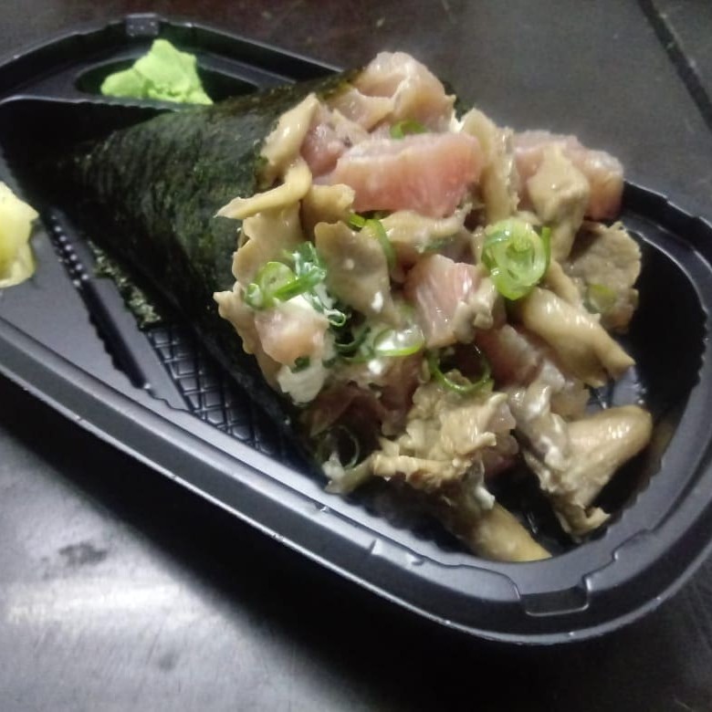 Irresístivel Temaki de Atum com alga marinha em forma de cone e arroz japonês (feito bem fresquinho) finzalizado com Doritos e cream cheese e cebolinha. Serve bem 1 pessoa Todos os nossos produtos são selecionados e manipulados diariamente!