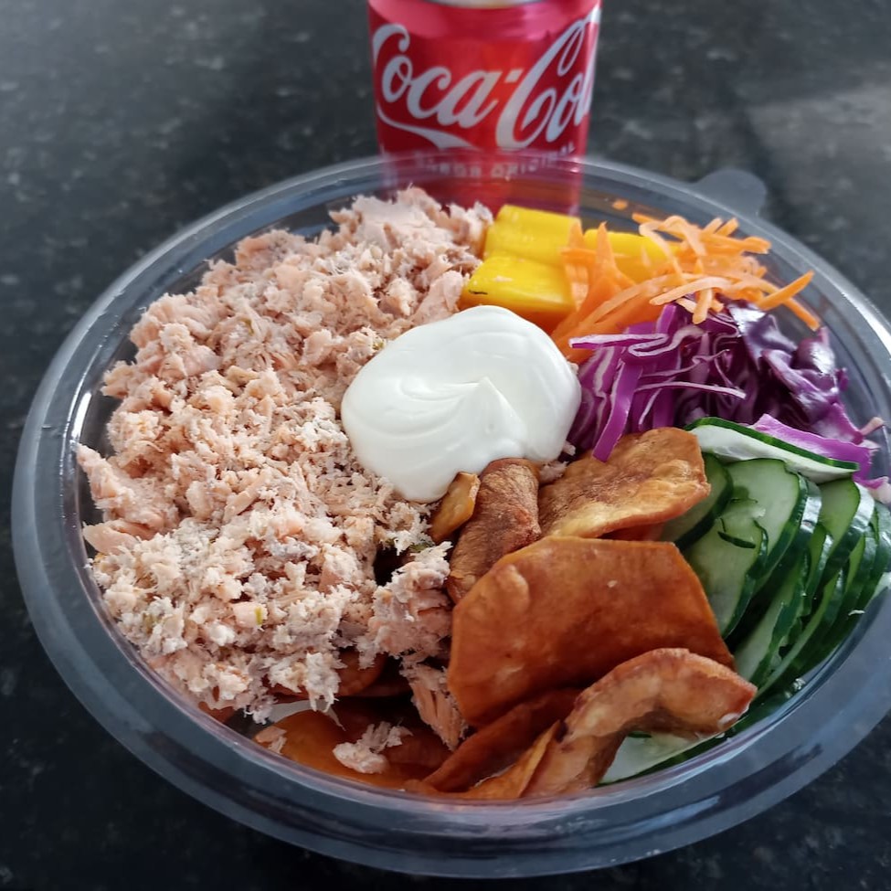 Escolha a sua base Preferida! Contém: 150g de Atum Fresco em cubo, cenoura, pepino, repolho, manga, creme cheese e chips de batata doce. Serve bem 1 pessoa Nossos produtos são frescos e manipulados diariamente.