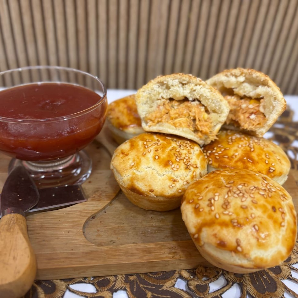 Nossa Empada de Frango Cremosa é uma verdadeira delícia, feita com uma massa que derrete na boca, cuidadosamente preparada à base de farinha e manteiga de primeira qualidade. O recheio é um espetáculo à parte, feito com frango desfiado suculento, milho fresco e cremoso, e uma mistura divina de creme de leite e Catupiry, que confere uma textura irresistivelmente aveludada. Faça parte da categoria d