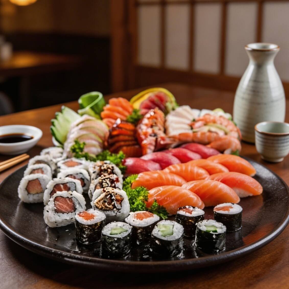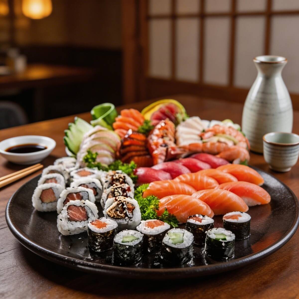 5 sashimi, 5 uramaki, 5 niguirí, 5 joy, 5 hossomaki
