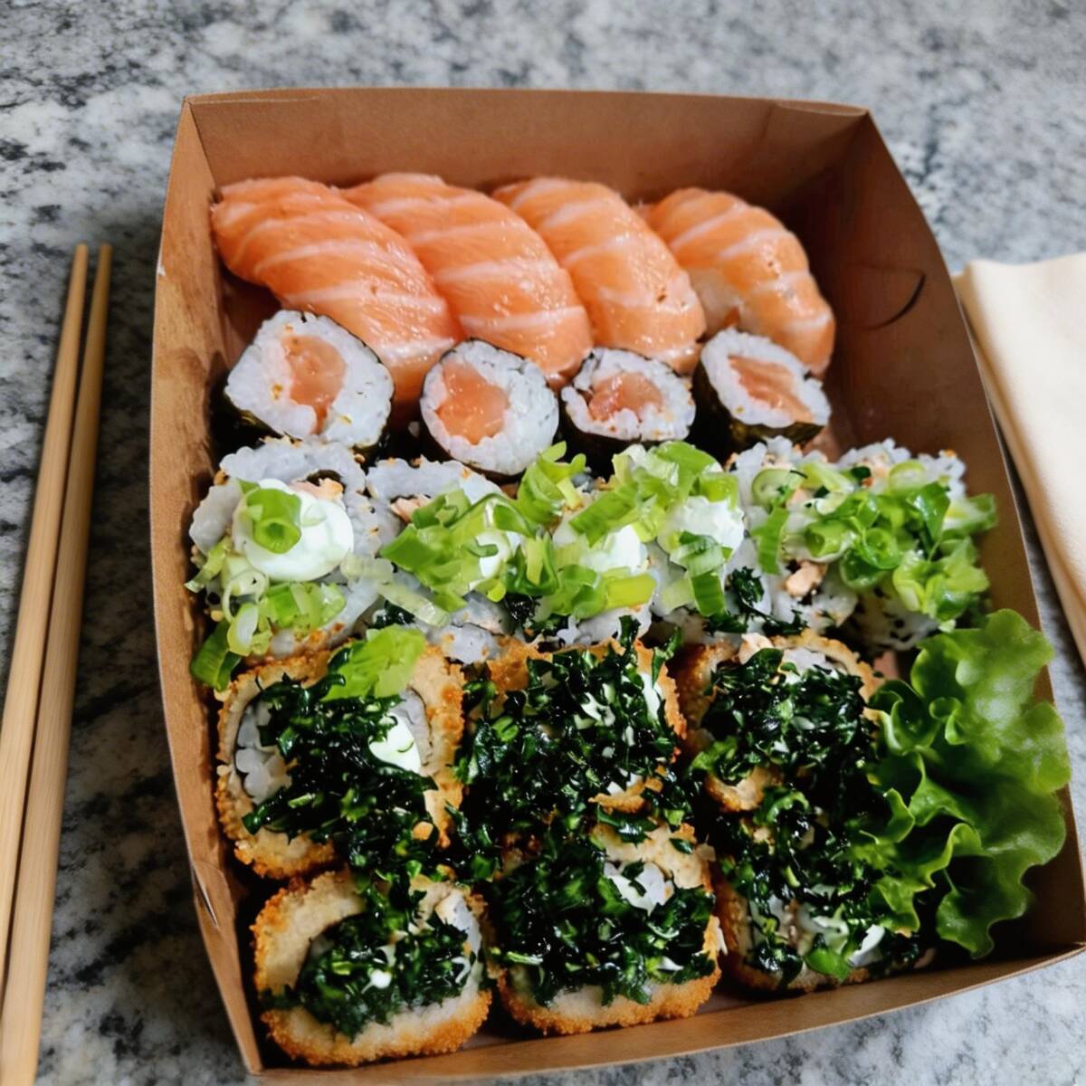 Deliciosa porção de sushi.