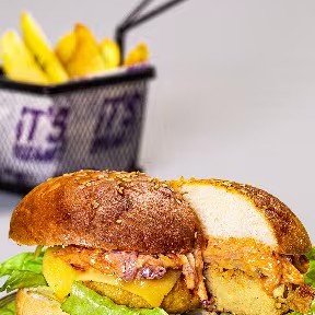 Tradicional Buckhead - delicioso burger de frango Plant Based ( base de ervilha) , pão de hambúrguer com gergelim ( opção sem glúten),burguer de frango ( base de ervilha - pode conter glúten) cebola caramelizada da casa feita com açúcar mascavo ,alface fresquinha , tomate, incrível queijo prato ( feito de castanhas)com fritas e bebida .