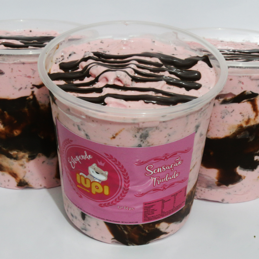 Sorvete de massa sabor morango com pedacinhos de chocolate e trufa 200ml