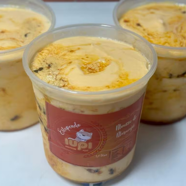 Sorvete de massa sabor mousse de maracujá com cobertura de maracujá com sementes 1,8l