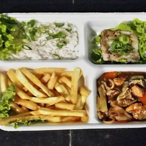 Combo composto por batata frita, arroz branco, yakissoba de frango e um mine filer de tilapia grelhado. obg: combo serve uma pessoa *Não possivel fazer alterações.