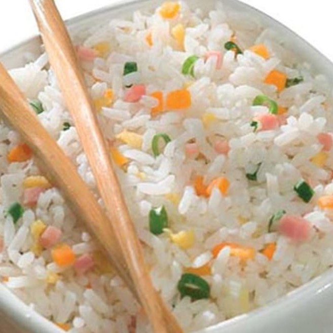 Arroz ,Cenoura , Ovo, Cebolinha e Carne