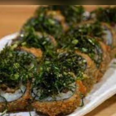 Hot roll de salmao grelhado com creme chesse e couve crispe empanado na farinha panko e frito