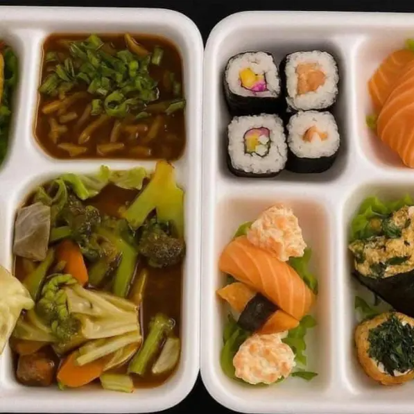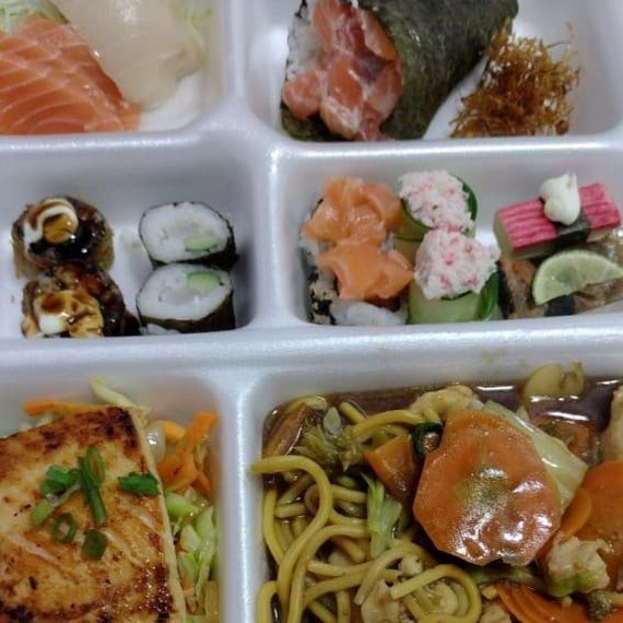 1 Yakisoba, 1 Salmão Grelhado, 1 Yakimeshi, 3 Rolinho primavera.