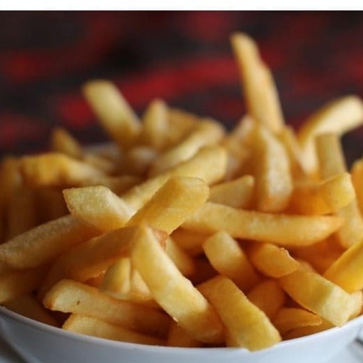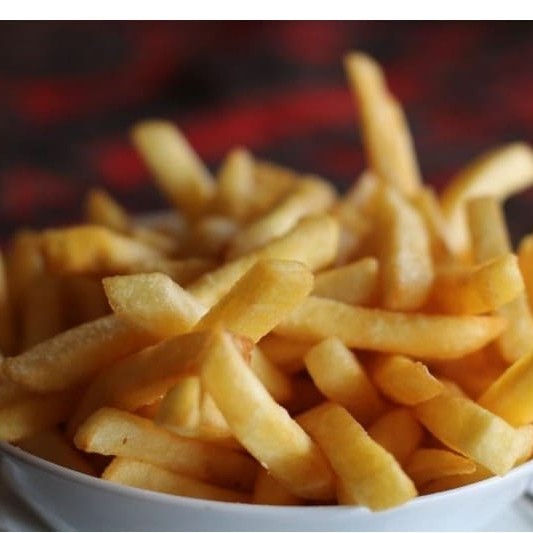 Carne bovina . Com Batata frita, e cebolinha ao molho soja e gengibre.