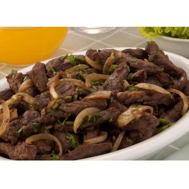 Carne bovina, com cebola ao molho de soja.
