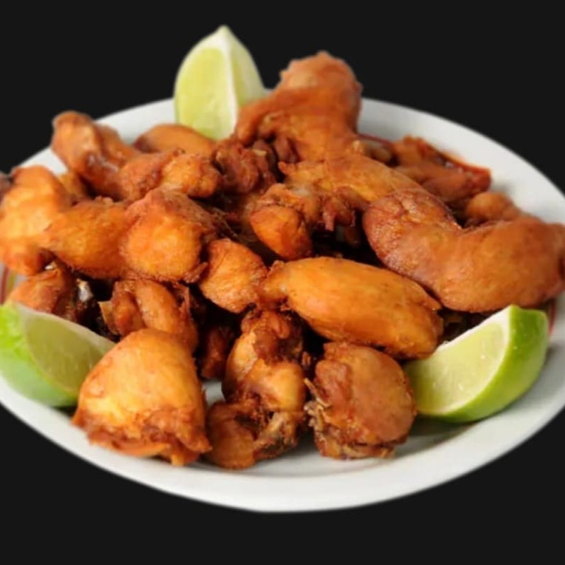 Pedaços de coxa desossada levemente empanado ,acompanha molho de soja e gengibre
