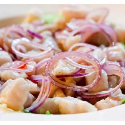 Camarão e Peixes variados com ,limão, pimenta de cheiro, cebola roxa, manga ,kani , salsa.