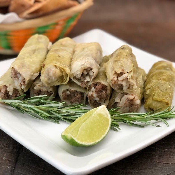 Folha de repolho,arroz,carne moída e tempero árabe