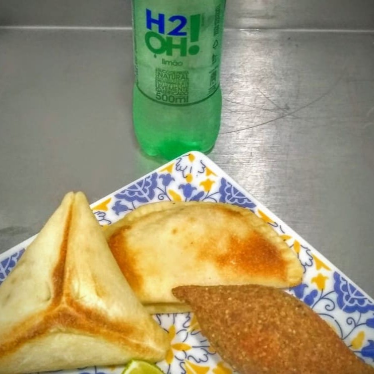 2 Esfihas fechadas de Carne, 1 Kibe e 1 H2O