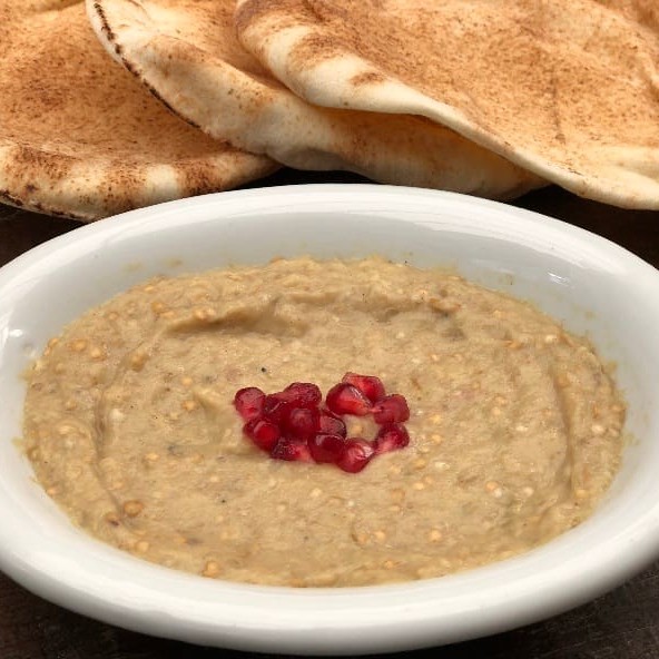 Berinjela, tahine, limão e alho