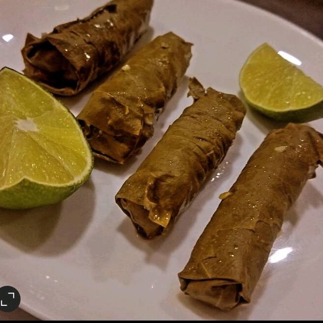Charutos de folha de uva recheados com arroz carne moída