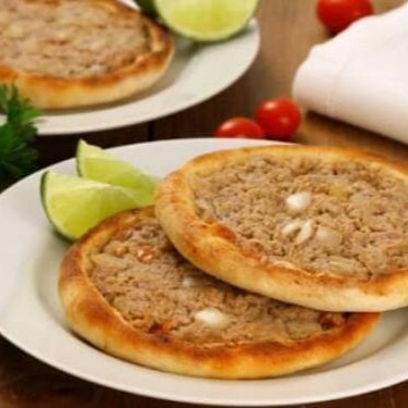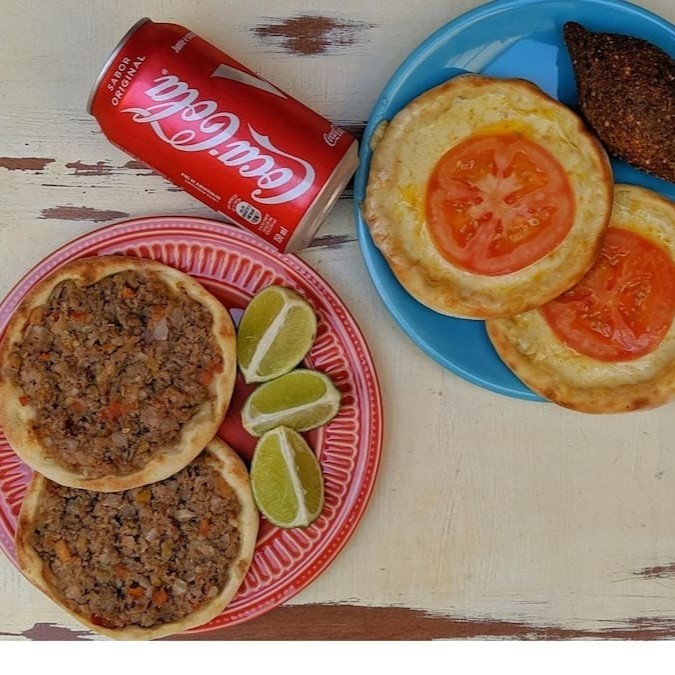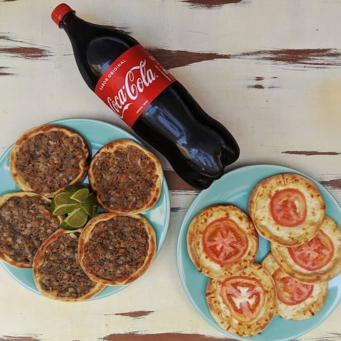 2* Esfihas abertas temperadas com especiarias, acompanhada de um refrigerante gelado