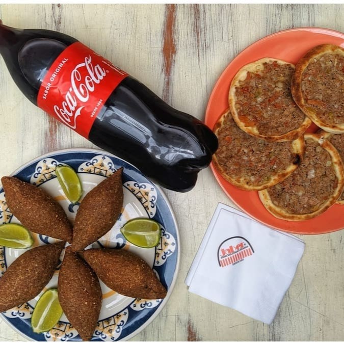 Carne moída, trigo, cebola e pimenta síria. 1 Coca-Cola 350ml