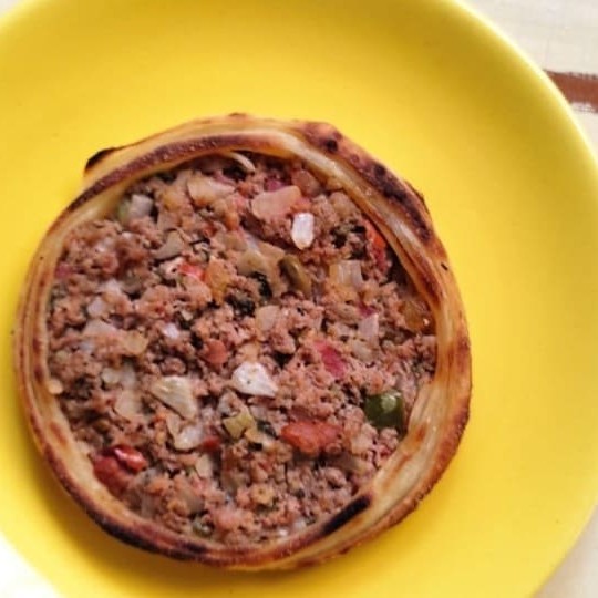 Carne moída, cebola e tomate. 1 Coca-Cola 350ml