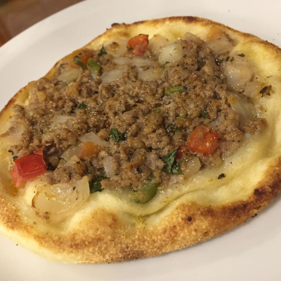 Esfiha recheada de carne temperada com especiarias da culinária árabe