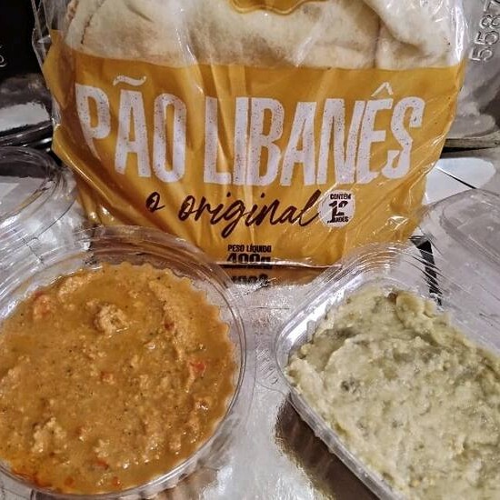 10 esfihas abertas de carne+10 esfihas abertas de queijo + homus (250 grs)+coalhada seca (220 grs) + pacote de pão 1 duzia .