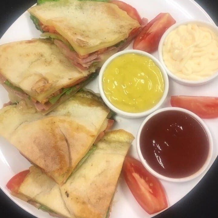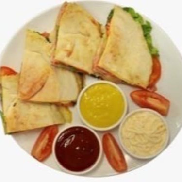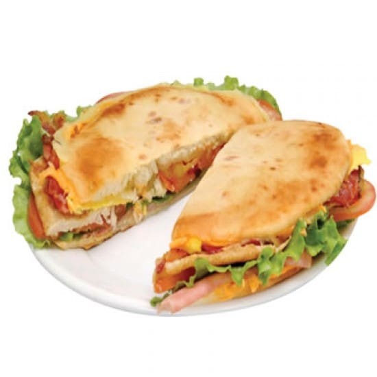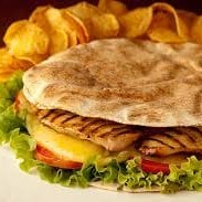 Pão sírio, filet frango, queijo, alface e tomate.