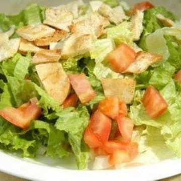 Alface, tomate, hortelã, pepino, cebola e torrada síria.