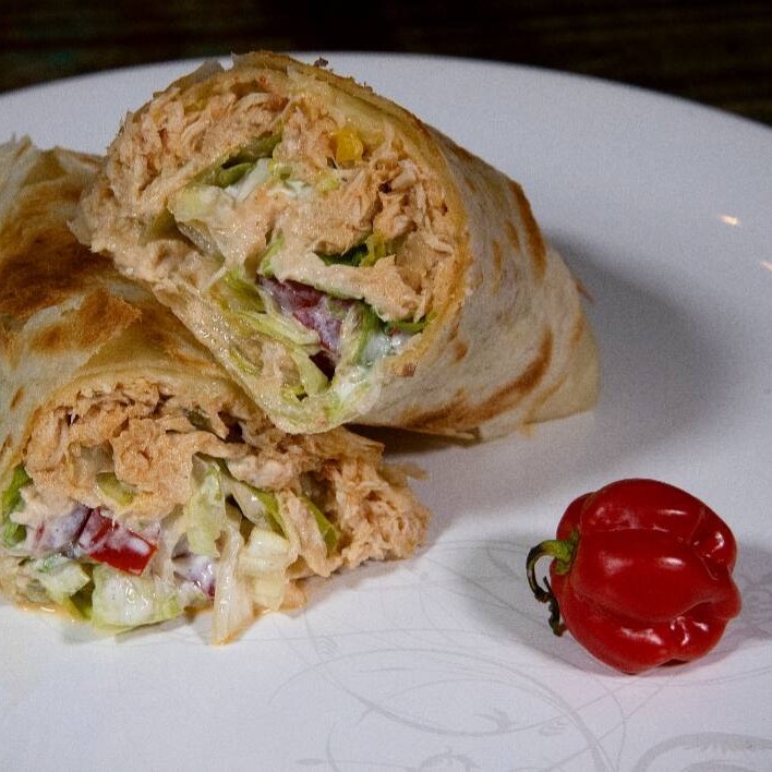 Tortilla de Trigo, Alface, Tomate, Queijo, Sour Cream e Recheio à sua escolha.