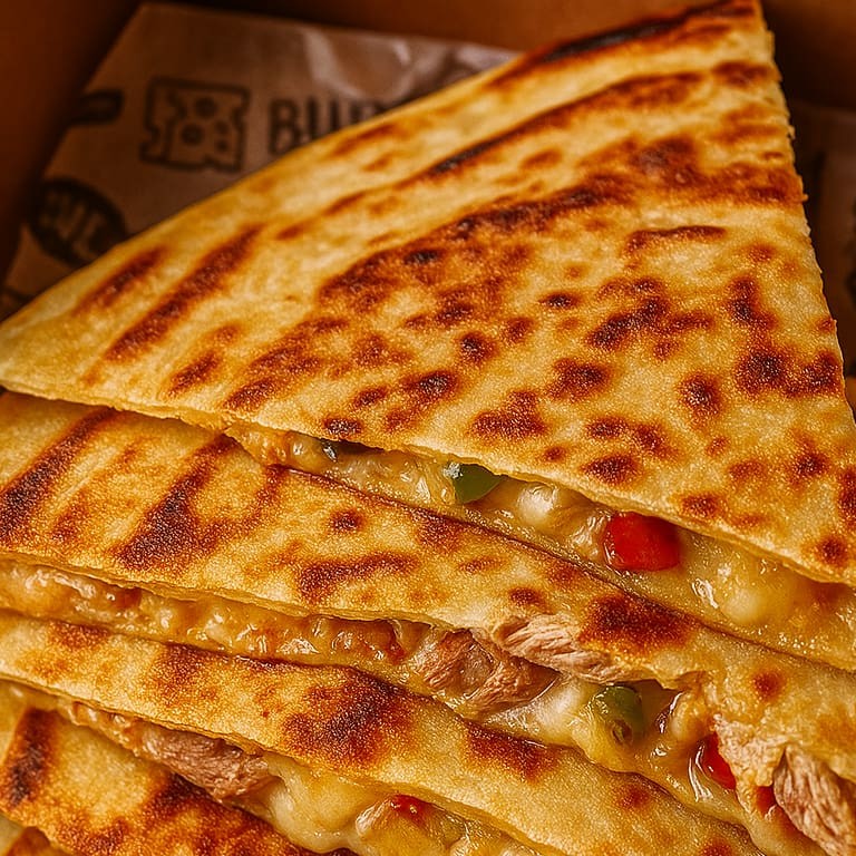 Aquele sabor de brownie quentinho com chocolate derretido, mas com uma casquinha muito mais crocante. Nossa quesadilla de chocolate é puro conforto: uma tortilla dourada na chapa, recheada com um chocolate cremoso que derrete e se espalha a cada mordida. É mais simples e surpreendente que um petit gâteau, a sobremesa perfeita para os verdadeiros chocólatras.