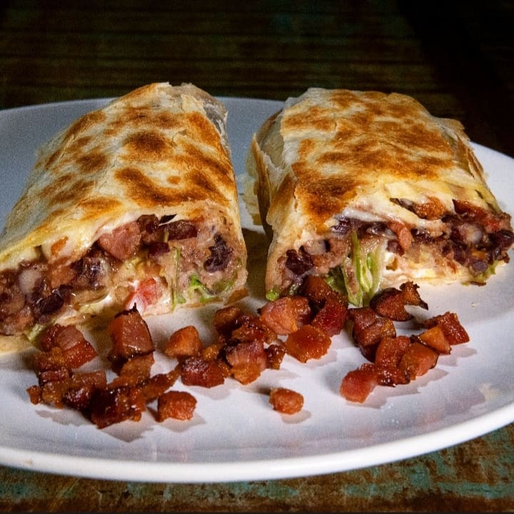Se você está navegando pelo procurando por pizza de calabresa com bacon ou uma porção de fritas com cheddar e bacon, sua busca termina aqui. Este burrito foi criado para quem não tem medo de sabor. Nosso Chilli de Carne, rico e encorpado, encontra seu parceiro perfeito: bacon defumado e crocante em cada mordida. O queijo derretido une tudo, enquanto o sour cream e a salada fresca garantem que a experiência seja perfeitamente equilibrada. É uma refeição completa que supera qualquer pizza ou porção.
