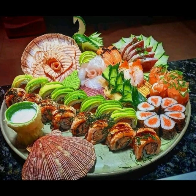 Arroz ,Salmão ,Manga,Sunomono , Crisp Batata E Creme Cheese