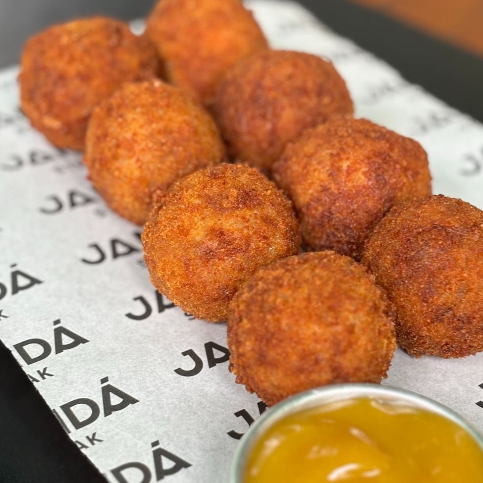 Nossa especialidade em formato de bolinho. Por fora crocante e dourado e por dentro macio e suculento. Um petisco de personalidade, do jeito que a casa gosta. Acompanha molho de mostarda com mel.