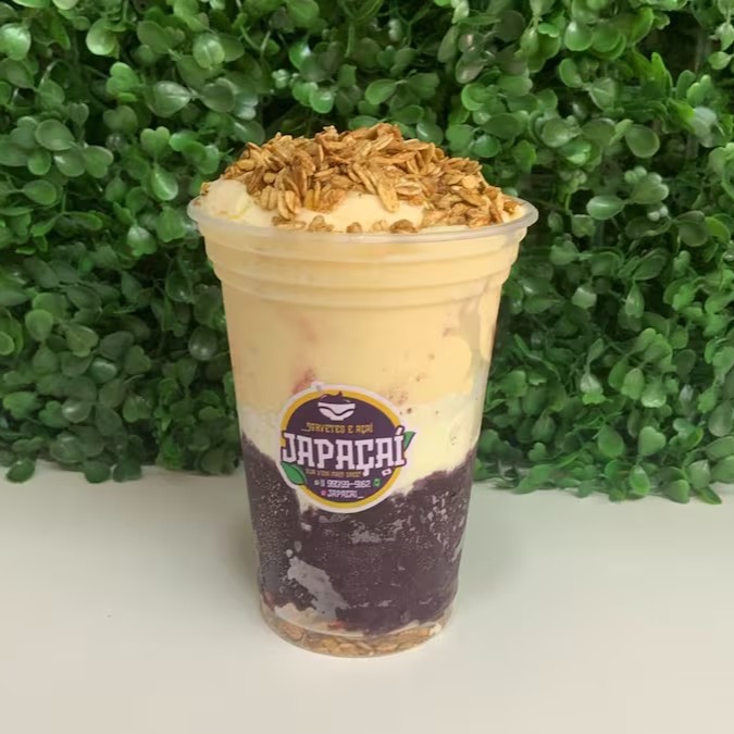 Açaí natural, banana, leite condensado e leite em pó. É a tradição brasileira nas suas mãos.