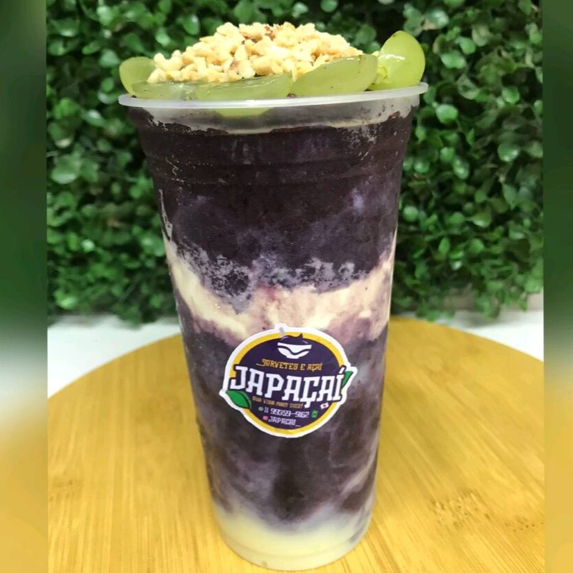 Nosso delicioso açaí natural, batido com leite integral, leite em pó, onde você pode adicionar banana, paçoca mais leite condensado e mais leite em pó