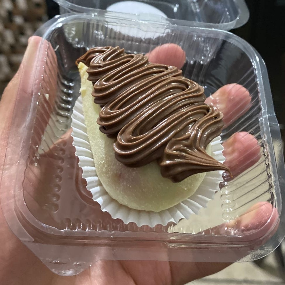 Cobertura de chocolate ao leite e recheio de brigadeiro de ninho e nutella.