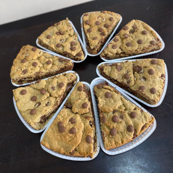 Brownie c/ gotas de chocolate e cobertura de brigadeiro de ninho e nutella.
