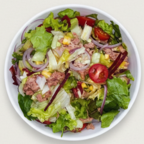 Salada leve e deliciosa com 100g de atum, 50g de mix roxo crocante e 50g de milho doce. Uma combinação simples e cheia de sabor!
