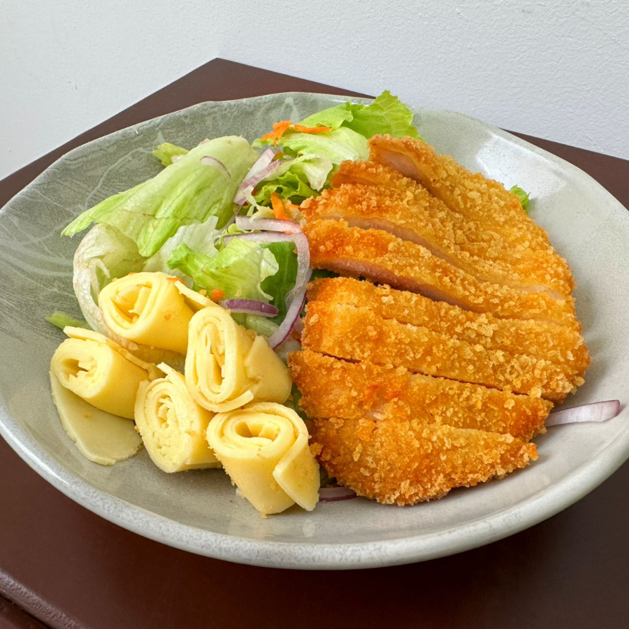 Salada fresca e saudável com frango crocante empanado, acompanhada de mix de folhas verdes, cebola roxa. Uma refeição leve e saborosa, perfeita para quem busca equilíbrio e praticidade no Dia a Dia.