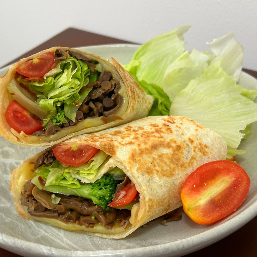 Wrap nutritivo preparada com cogumelos salteados, folhas frescas de salada americana, tomates-cereja suculentos e brócolis crocantes. Finalizada com uma irresistível cebola crispy que adiciona textura e sabor a cada garfada. Leve, saborosa e perfeita para quem busca uma refeição equilibrada e cheia de frescor.