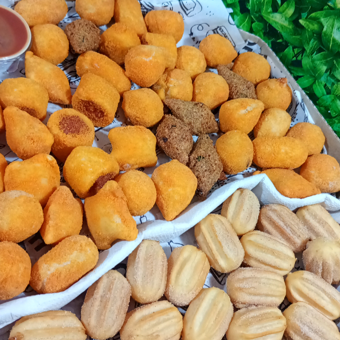 30 Mini Salgados + 20 Mini Churros
