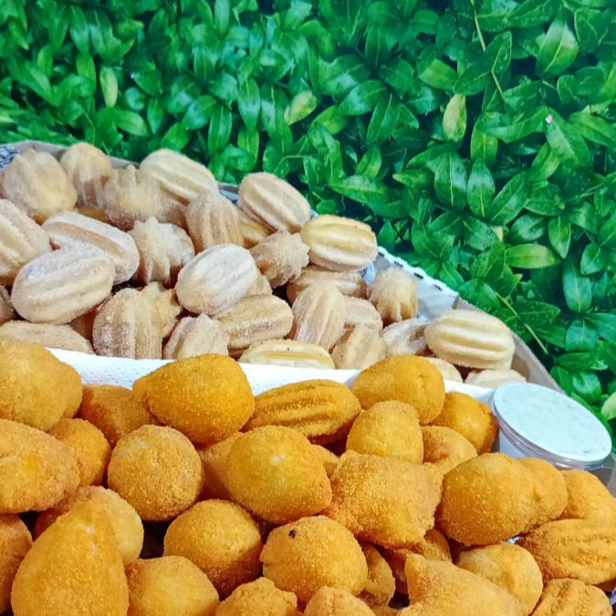 Promoção: 50 Mini Salgados Fritos Sortidos + 50 Mini Churros De Doce De Leite
