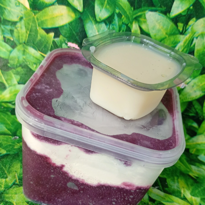Açaí no potinho 250 ml acompanha açaí, leite em pó e leite condensado