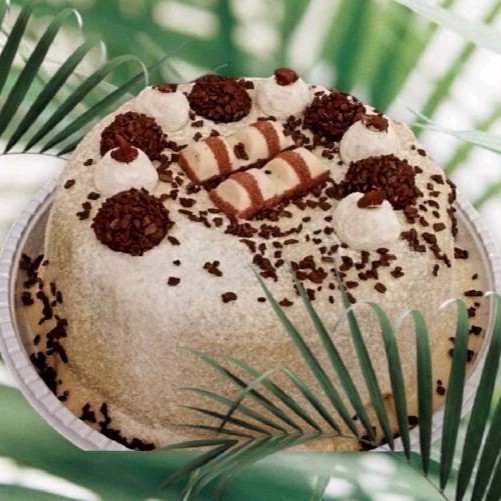 Exquisite Bolo Prestígio, perfeitamente situado na categoria de 'Bolos Com Coberturas'. Este é um bolo de chocolate caseiro de extrema suavidade, com uma textura tão leve e fofinha que irá derreter na sua boca. A coroa de glória desta criação de dar água na boca é a sua luxuosa cobertura de Prestígio. Uma combinação de coco ralado e chocolate de alta qualidade que transforma este bolo numa obra de arte culinária. Cada mordida promete ser uma experiência decadente e inesquecível. Um deleite perfeito para os amantes de chocolate e coco.