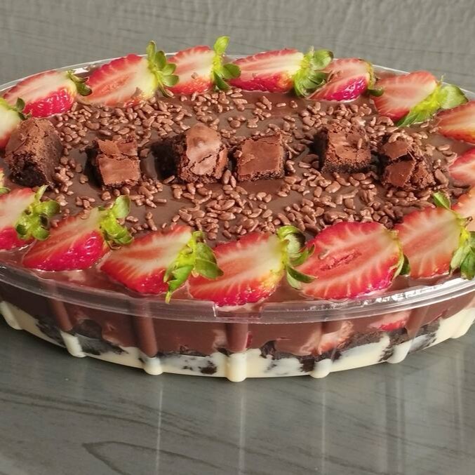 Esta 'Travessa Brownie' é uma verdadeira tentação para qualquer amante de sobremesas. Apresentando um irresistível brigadeiro gourmet de chocolate, que se funde harmoniosamente com suculentos pedaços de brownie macios e ricos em sabor. Além disso, inclui um delicioso brigadeiro gourmet de leite Ninho e morangos picados que proporciona uma textura cremosa e um sabor inconfundivelmente aconchegante. A finalização perfeita fica por conta dos morangos frescos, que trazem uma nota de frescor e equilibram a doçura dos demais ingredientes. Tudo isso servido em uma travessa, pronta para você se deliciar em cada colherada!