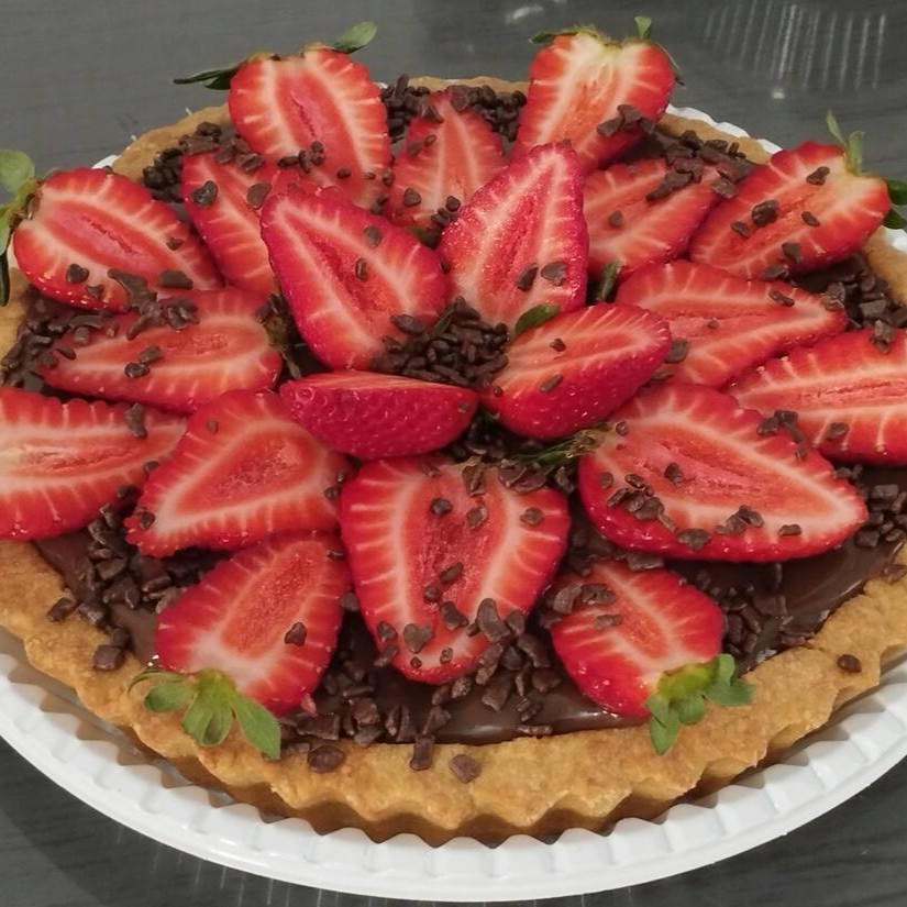 Saboreie a nossa Torta de Morango, uma delícia que serve até 8 pessoas. Ela é preparada com uma base de torta amanteigada irresistivelmente crocante, recheada com um sofisticado brigadeiro gourmet de leite Ninho, que proporciona uma experiência cremosa e suave. Os morangos frescos, cuidadosamente selecionados, adicionam um toque de acidez e doçura natural, revestidos com uma brilhante geléia que intensifica o sabor frutado. Para finalizar, um generoso xerém de amendoim traz uma textura surpreendente. Uma combinação perfeita de sabores que irá encantar o seu paladar!