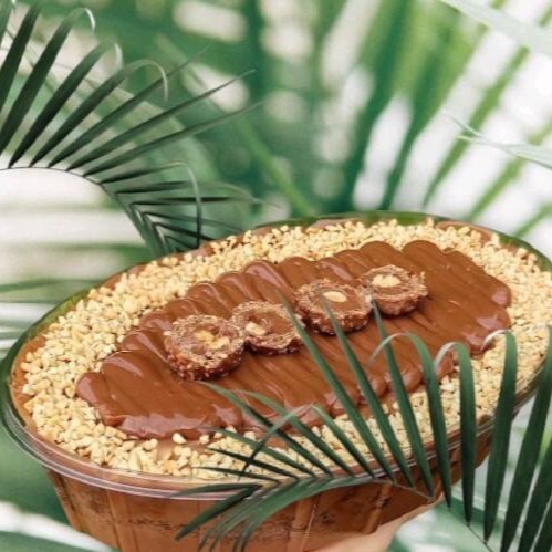 Apresentamos a Travessa Ferrero Rocher: uma sobremesa exuberante para os verdadeiros apaixonados por chocolate. Este prato irresistível é composto por um delicioso e sofisticado brigadeiro gourmet de chocolate, que harmoniza perfeitamente com os pedaços úmidos de brownie. A crocância do amendoim adiciona uma textura surpreendente, enquanto a Nutella, cremosa e indulgente, eleva a experiência a outro nível. Para coroar, a decoração inclui o inconfundível bombom Ferrero Rocher, proporcionando um final luxuoso e inesquecível. Uma sobremesa que é verdadeiramente uma celebração ao chocolate.