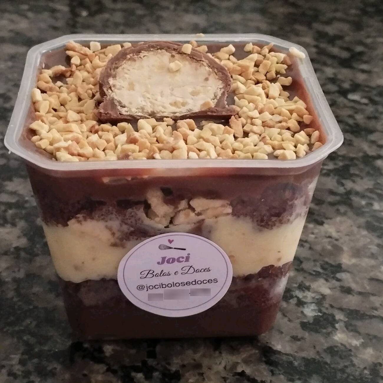 Apresentamos a 'Travessa Sonho de Valsa', uma requintada sobremesa da nossa categoria 'Sobremesas na Travessa (Tamanho P ou G)'. Aprecie primeiramente nosso sedutor brigadeiro gourmet de leite Ninho, enriquecido com xerém de amendoim. Em seguida, encontra-se uma envolvente camada de bolo de chocolate, incrivelmente úmido e macio. Prosseguindo na travessa, saboreie nosso autêntico brigadeiro gourmet de chocolate, intercalado com generosos pedaços de bombom Sonho de Valsa. Para finalizar com maestria, a sobremesa é coberta com um delicado chantilly e mais pedaços do irresistível bombom. Uma experiência gastronômica inesquecível!