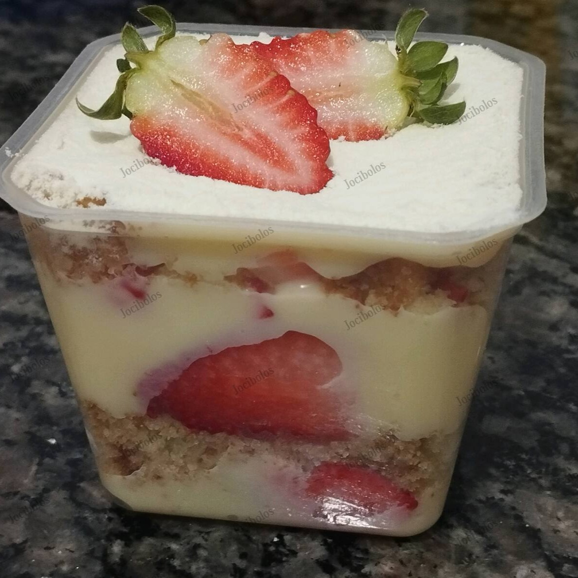 Apresentamos o Bolo no Pote Ninho com Morangos, uma deliciosa e generosa porção de bolo branco suavemente umedecido, meticulosamente recheado e coberto com um irresistível brigadeiro gourmet de leite Ninho. O sabor requintado do leite Ninho se mistura harmoniosamente com o doce sabor dos morangos frescos, proporcionando uma experiência gastronômica inigualável. Cada mordida evoca a sensação de um