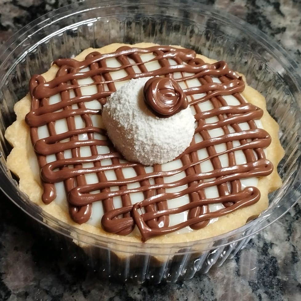 A 'Travessa Prestígio' é uma sobremesa sublime da categoria 'Sobremesas na Travessa', disponível nos tamanhos P ou G. Este prato luxuoso apresenta um bolo de chocolate extremamente úmido, quase derretendo, que se harmoniza perfeitamente com um creme de coco excepcionalmente cremoso e saboroso. Adicionamos coco em flocos para dar uma textura agradável e pedaços do irresistível chocolate Prestígio p
