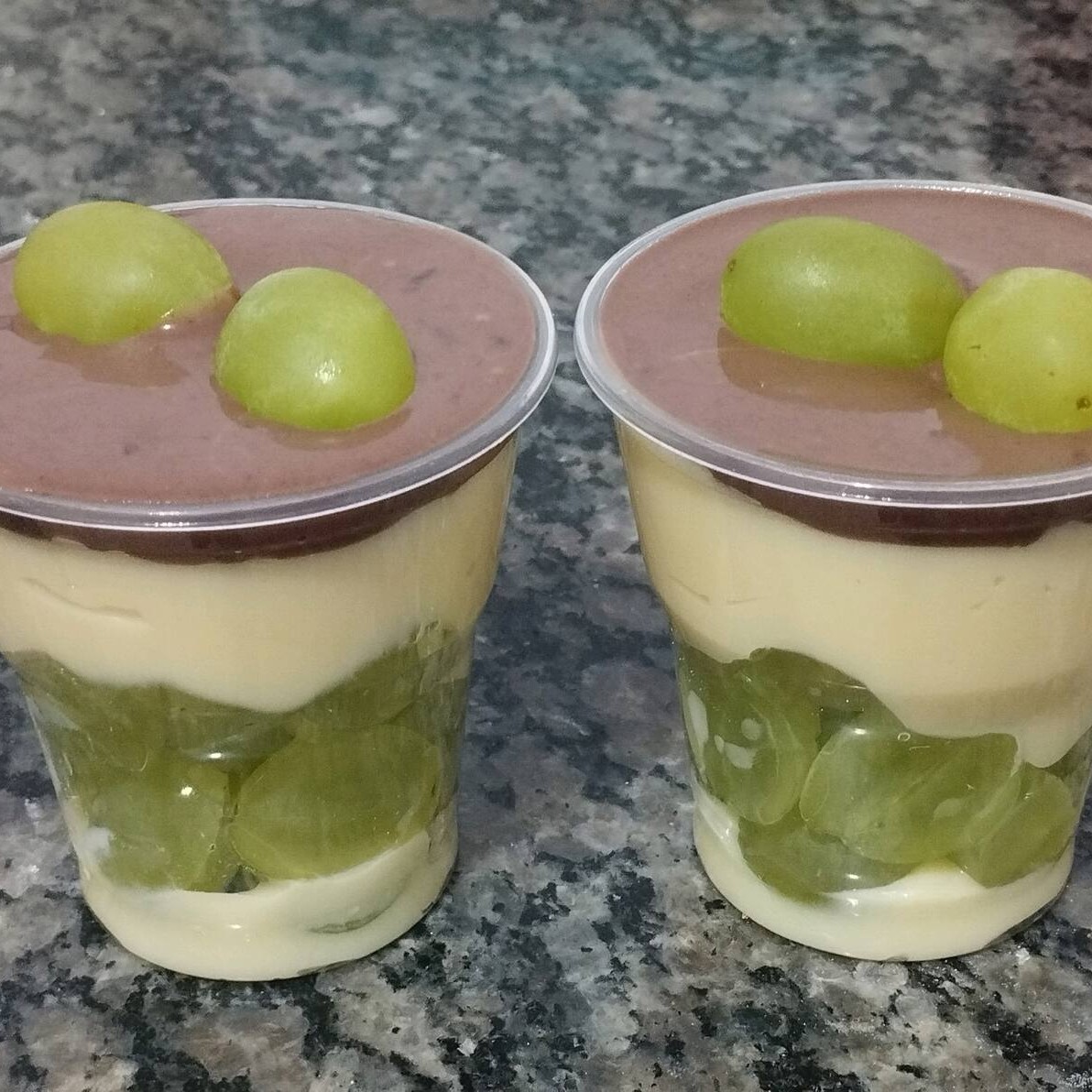 Deslumbre-se com o 'Escondidinho de Uvas Verdes', uma sobremesa individual que combina a sofisticação e intensidade de dois brigadeiros gourmet com o surpreendente toque azedinho das uvas verdes. A fusão desses sabores resulta em uma experiência gastronômica sensacional. Cada colherada é uma verdadeira celebração ao paladar. Permita-se experimentar esta harmonia perfeita de sabores e texturas, que